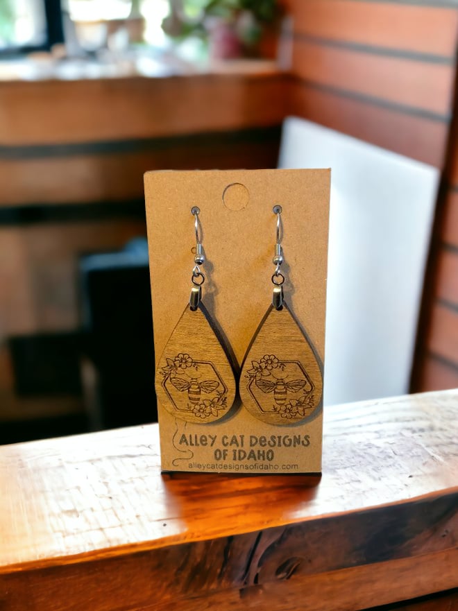 Introducing our stunning Honey Bee Earrings, expertly laser engraved onto beautifully crafted maple wood. These earrings feature a delicate honey bee design that captures the essence of nature's beauty. Perfect for adding a touch of elegance to any outfit, these earrings make a wonderful addition to your jewelry collection. Handmade with care, these earrings are sure to become a cherished accessory for years to come.